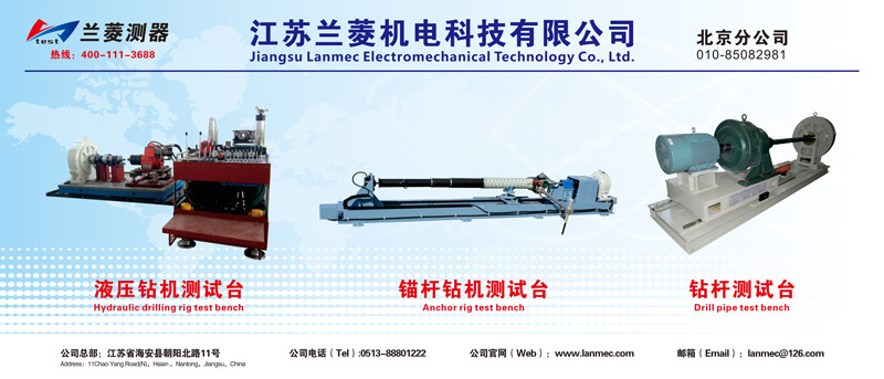 蘭菱測器 江蘇蘭菱機電科技有限公司 北京分公司 010-85082981 液壓鉆機測試臺 Hydraulic Drilling Rig Test bench 錨桿鉆機測試臺 Anchor rig test stand 鉆桿測試臺 Drill pipe test bench 公司總部:江蘇省海安縣朝陽北路11號 公司電話(Tel):0513-888011222 公司官網(wǎng)(web):m.nfsjzs.com 郵箱(Emal):lanmec@126.com